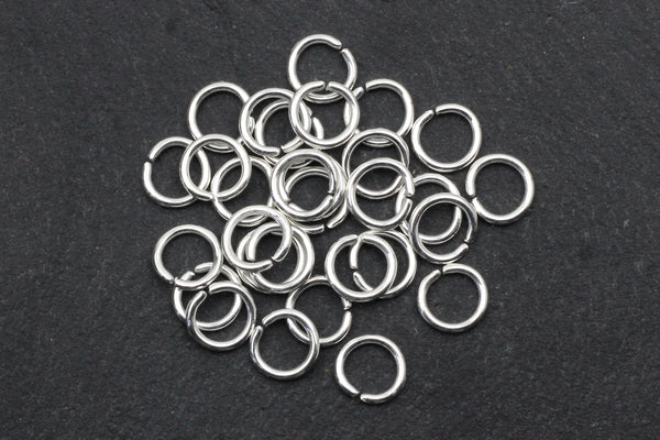 Jump rings are strong round or oval wire rings that twist open and closed. They are used to attach findings to a stringing material.