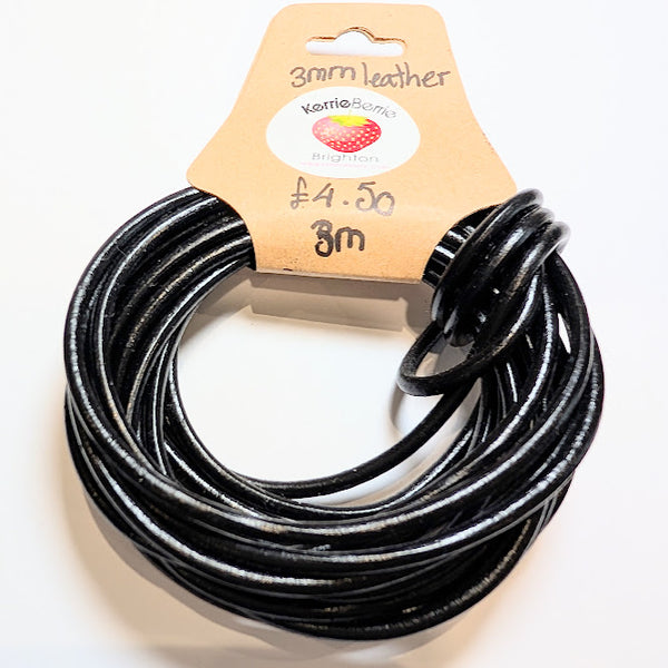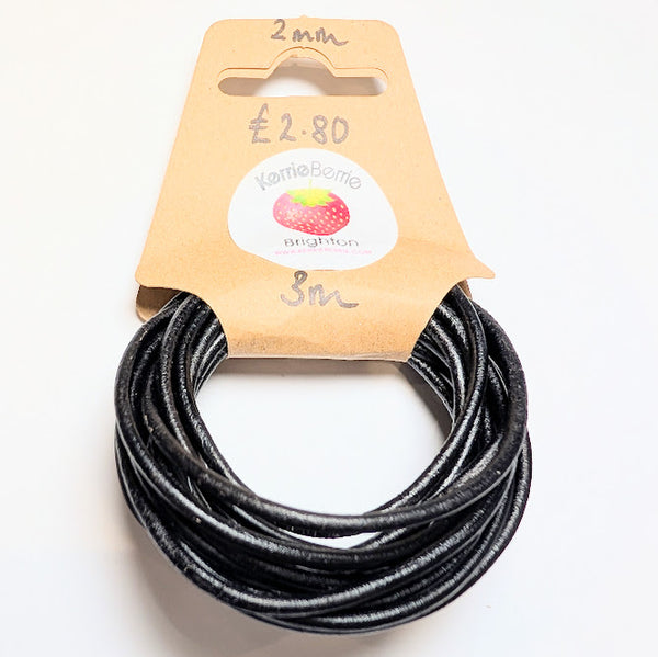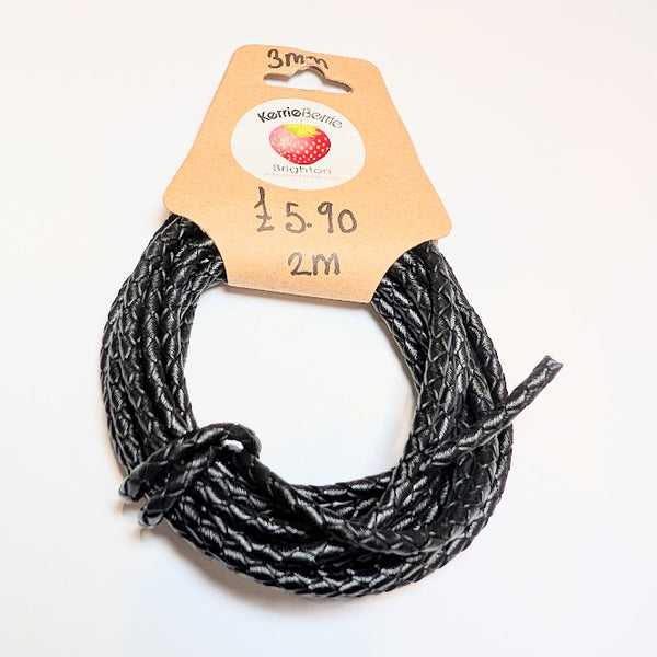 Black Woven Leather Cord (Plaited) – 3mm (2 meters)