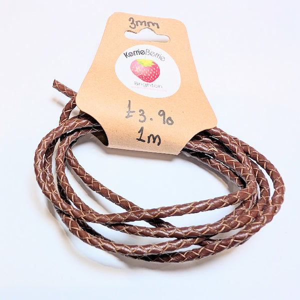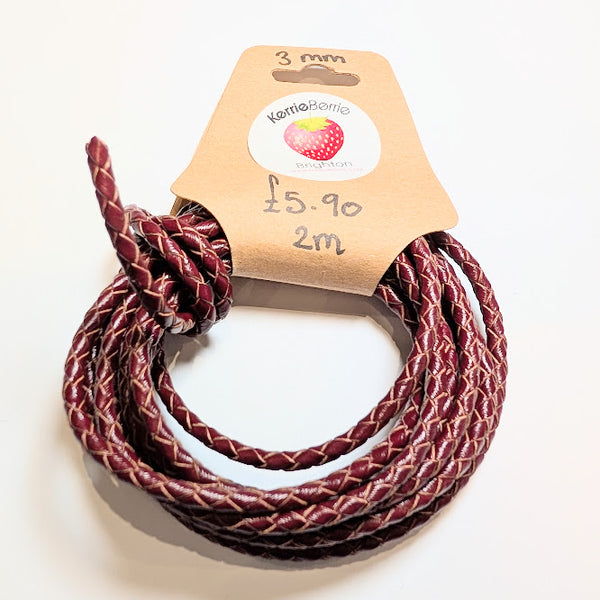 Red/Brown Woven Leather Cord (Plaited) – 3mm (2 meters)