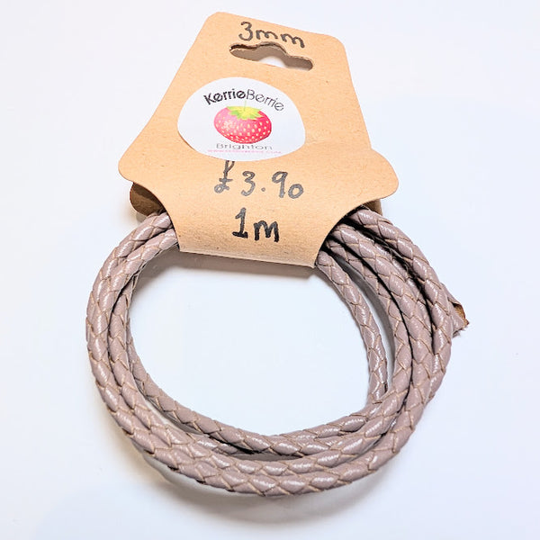 Grey Woven Leather Cord (Plaited) – 3mm (1 meters)